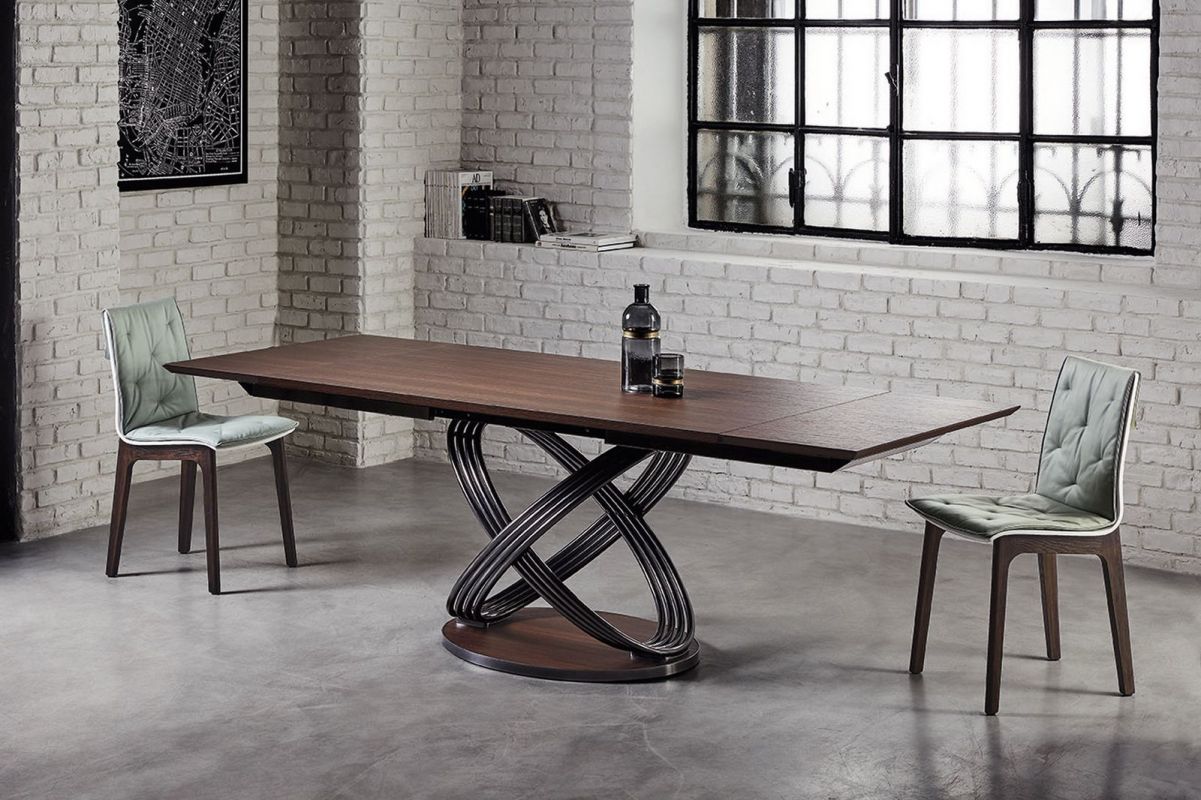 Table fix or with extensions with lacquered Metal rings. Base in lacquered Metal, Veneer wood or SuperMarble. Top in Solid wood, heritage walnut Solid wood, Veneer wood with solid edge, Veneer wood, Glass, velvet matt Anti-scratch Glass natural Marble, SuperMarble or SuperCeramic
